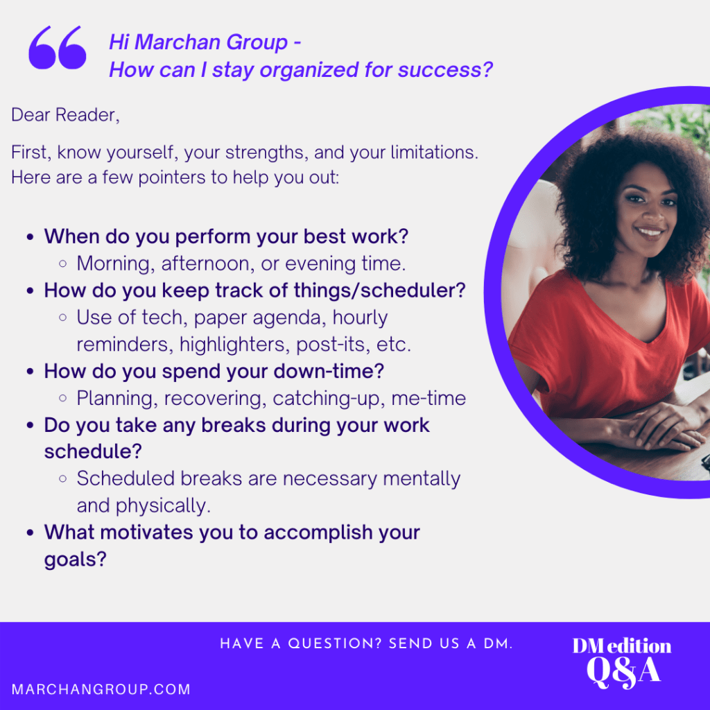 As part of Marchan Group’s DM Q&A edition, we answer questions sent in to us. A very popular question is one on organization skills for best practice and success.
